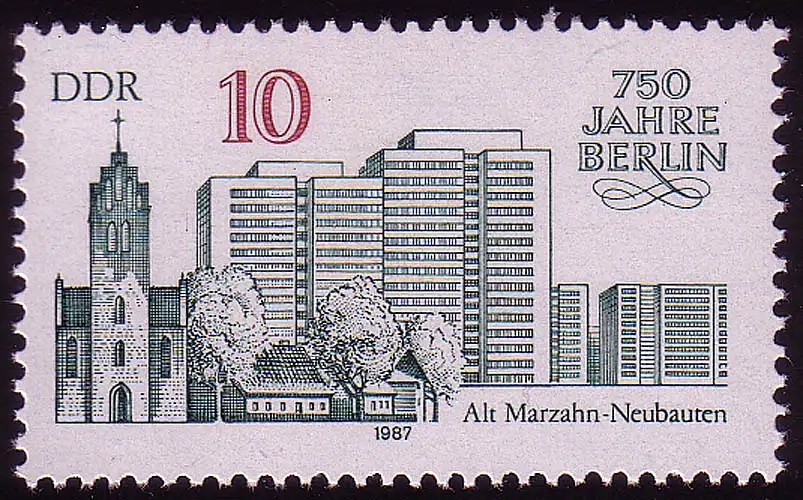 3076 Berlin 10 Pf 1986 Alt-Marzahn en petit arc **