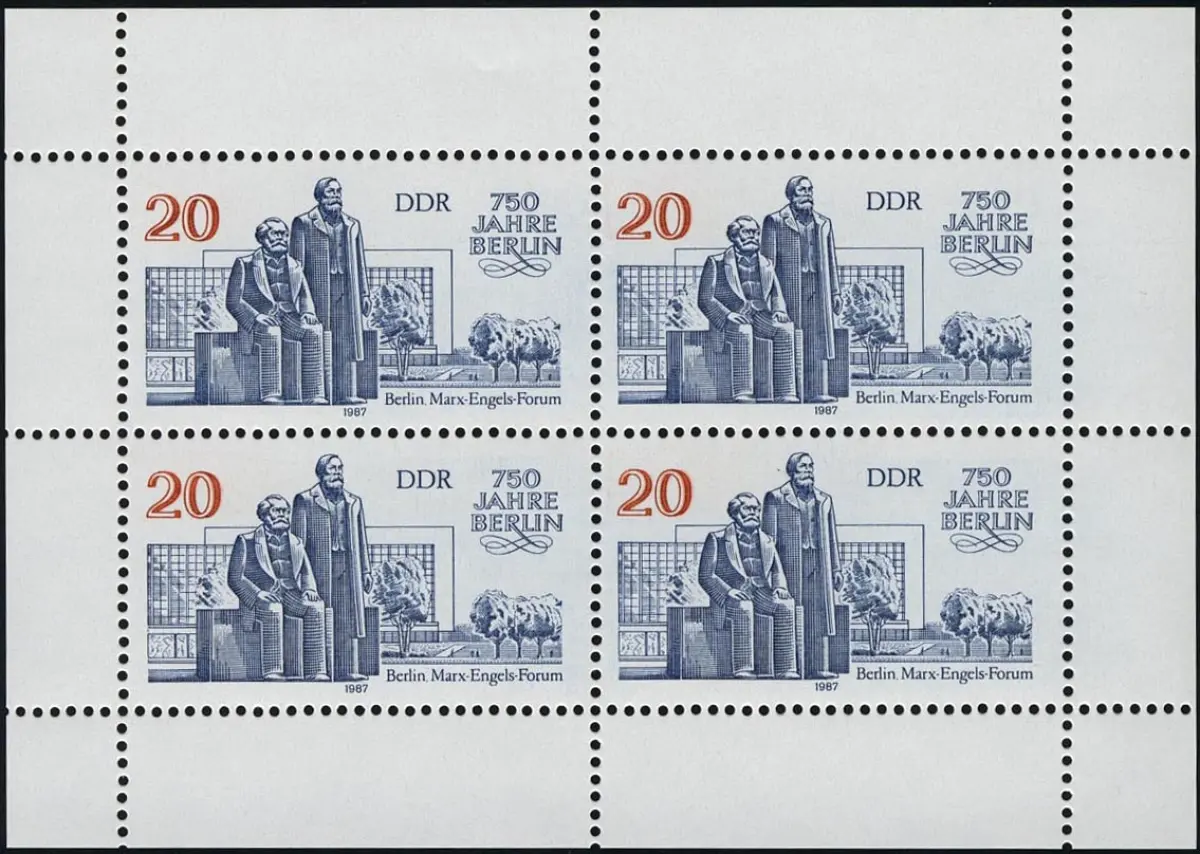 3077 Marx-Engels-Forum-Kleinbuch Berlin 4x 20 Pf 1987, ** post-fraîchissement
