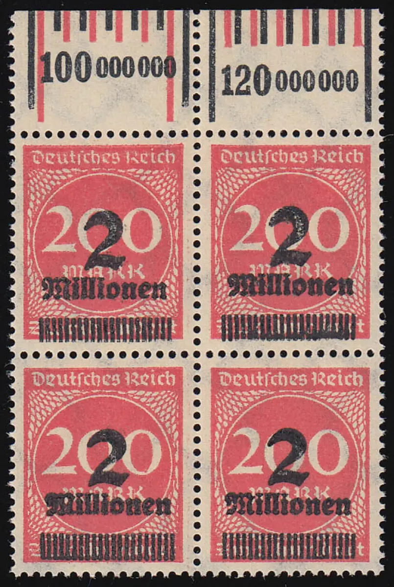 309 A W OR - 2 Mill. auf 200 Mark, Vbl. mit beiden Oberrand-Typen 060 und 141 **