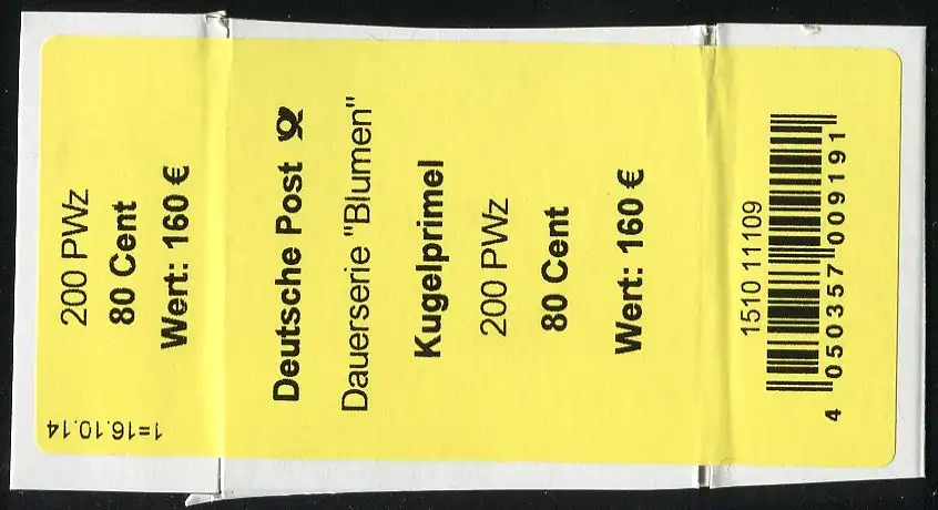entre Deutsche Post et valeur: 160 Euro = 42 mm, avec indication de la date Numéro de catalogue: 3115 Examen: original Référence produit: 50030311501191