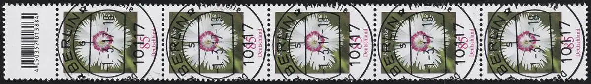 3116 Fleurs 85 centimes de rouleau 500, bandes de 5 bandes avec champ de code, ET-O 1.3.2017