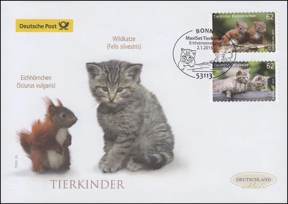 3129-3130 écureuils et chat sauvage, sk, Bijoux-FDC Allemagne exclusivement
