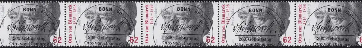 3145 Otto de Bismarck, à partir de rouleaux de 5 bandes avec le numéro GERADER, ESSt Bonn