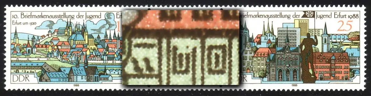 3173+3175 Erfurt 1988, impression de fond avec PLF: rupture de fenêtre en haut, case 24, **