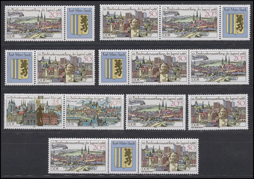3173-3176 Exposition de jeunes Erfurt / Chemnitz, 12 ZD + 4 Ezm, set post-fraîchissement