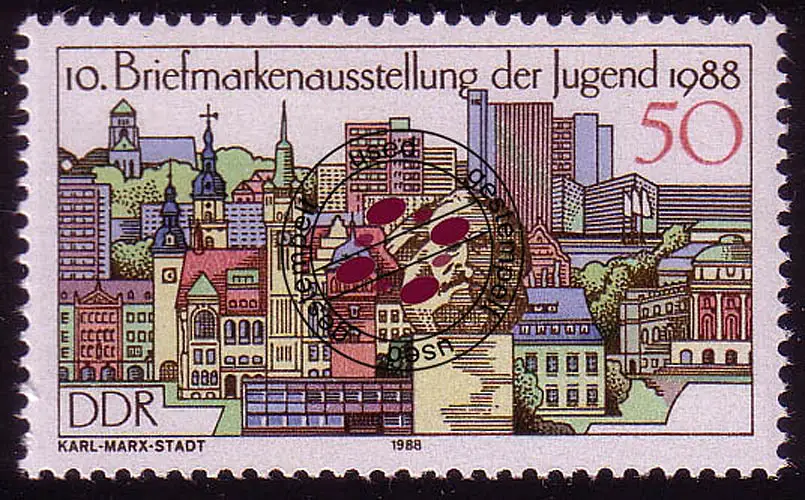 3176 jeunes gens du timbre 1988 50 Pf Chemnitz O