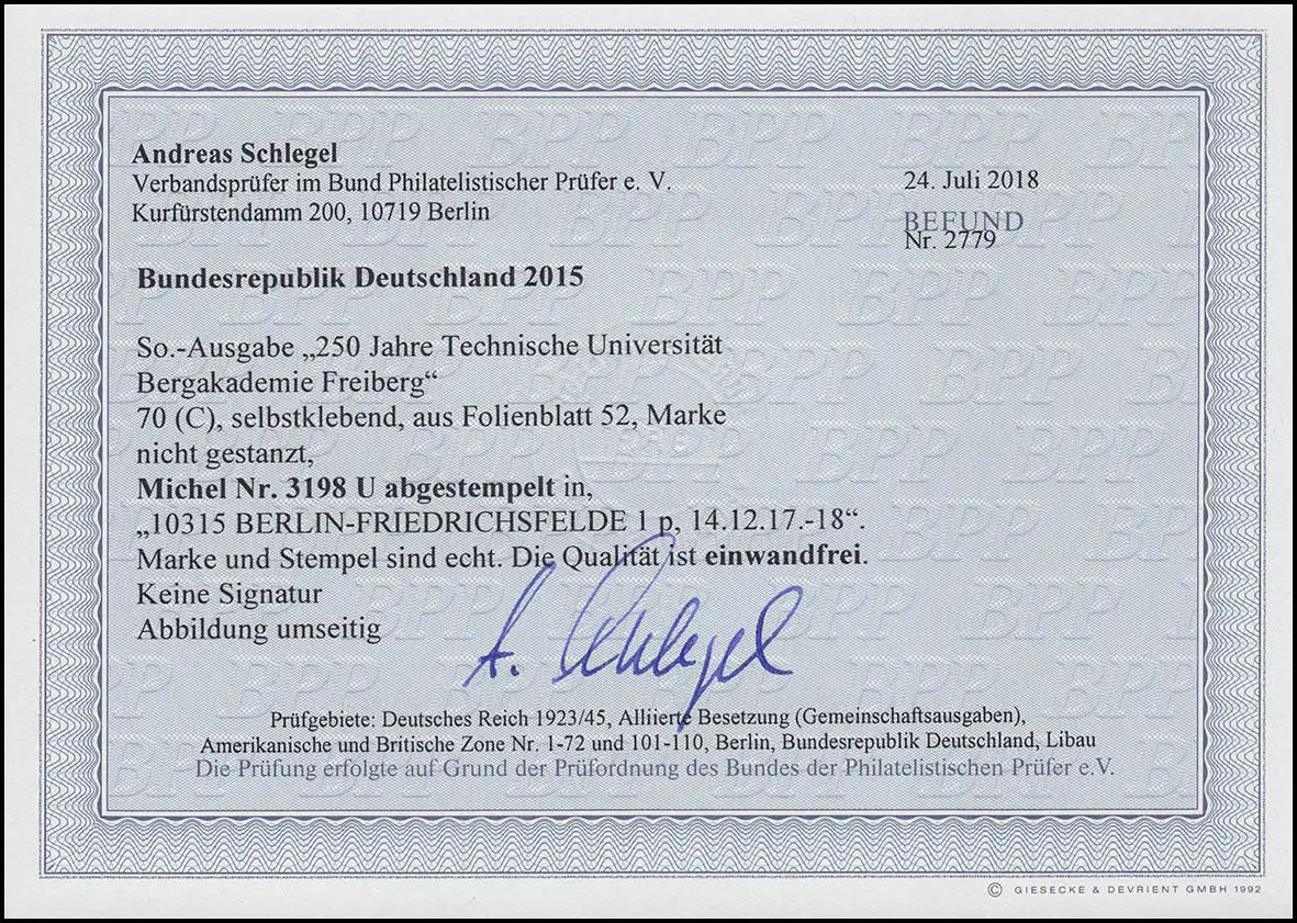 Rares variétés de cette édition autocollante, cachet intégral centrique Berlin-Friedrichsfelde 14.12.17, conservation parfaite selon le résultat A. Schlegel BPP Numéro de catalogue: 3198U Vérification: BP-Résultat Référence produit: 00000000019756