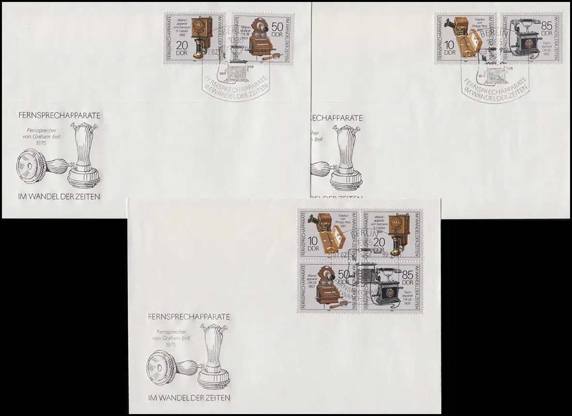 3226-3229 Téléphones: ensemble et quadruple sur 3 FDC Blanko ESSt BERLIN