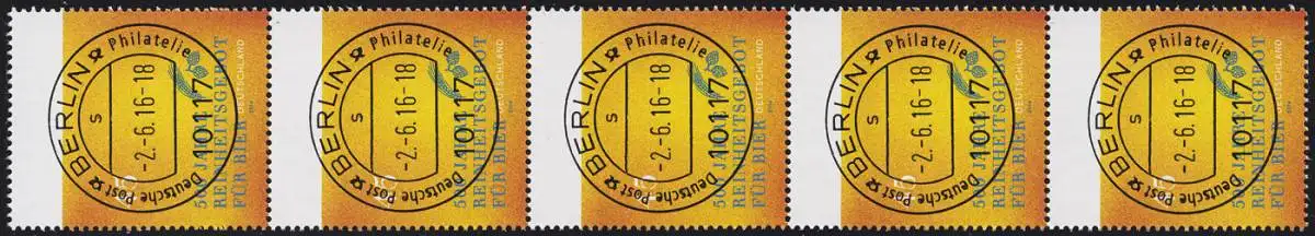 Timbre de première journée du bureau d'expédition "Philatelie Berlin 02.06.16 Numéro de catalogue: 3229 Vérification: original Numéro d ' article: 50030322901352