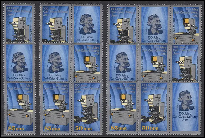 3252-3253 Fondation Carl Zeiss 1989, 6 ZD + 2 Ezm, set post-freeed