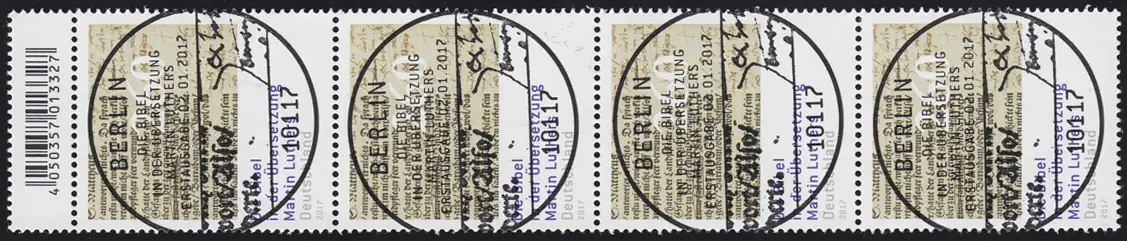 3277 Luther-Bibel, 4er-Streifen mit Nummer und Codierfeld, ESSt Berlin