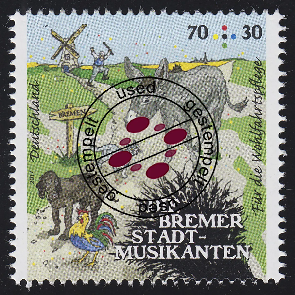 3282 Grimms Märchen - Die Bremer Stadtmusikanten 70 Cent, nassklebend O