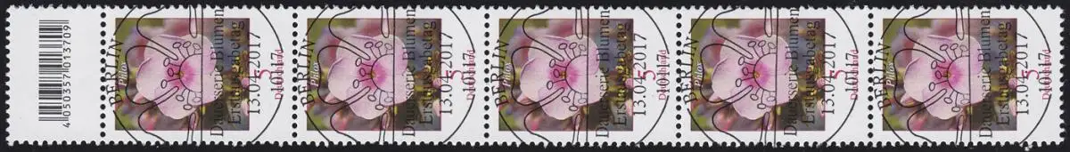 3296 Phlox 5 cent 500ers grand numéro, bande de 5 avec codage, ESSt Berlin