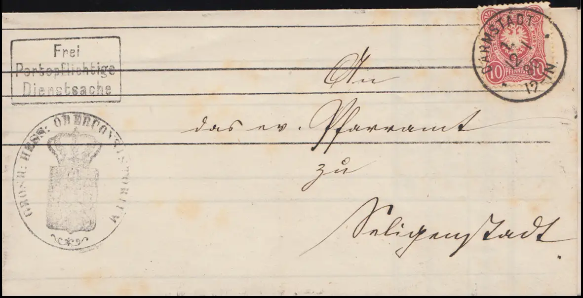 33 Point 10 Pfennige sur lettre de service cachet en cercle DARMSTADT 1 - 12.1.1880