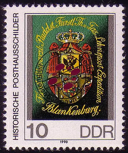 3302 Panneau de poste historique 10 Pf 27,5x33 mm O