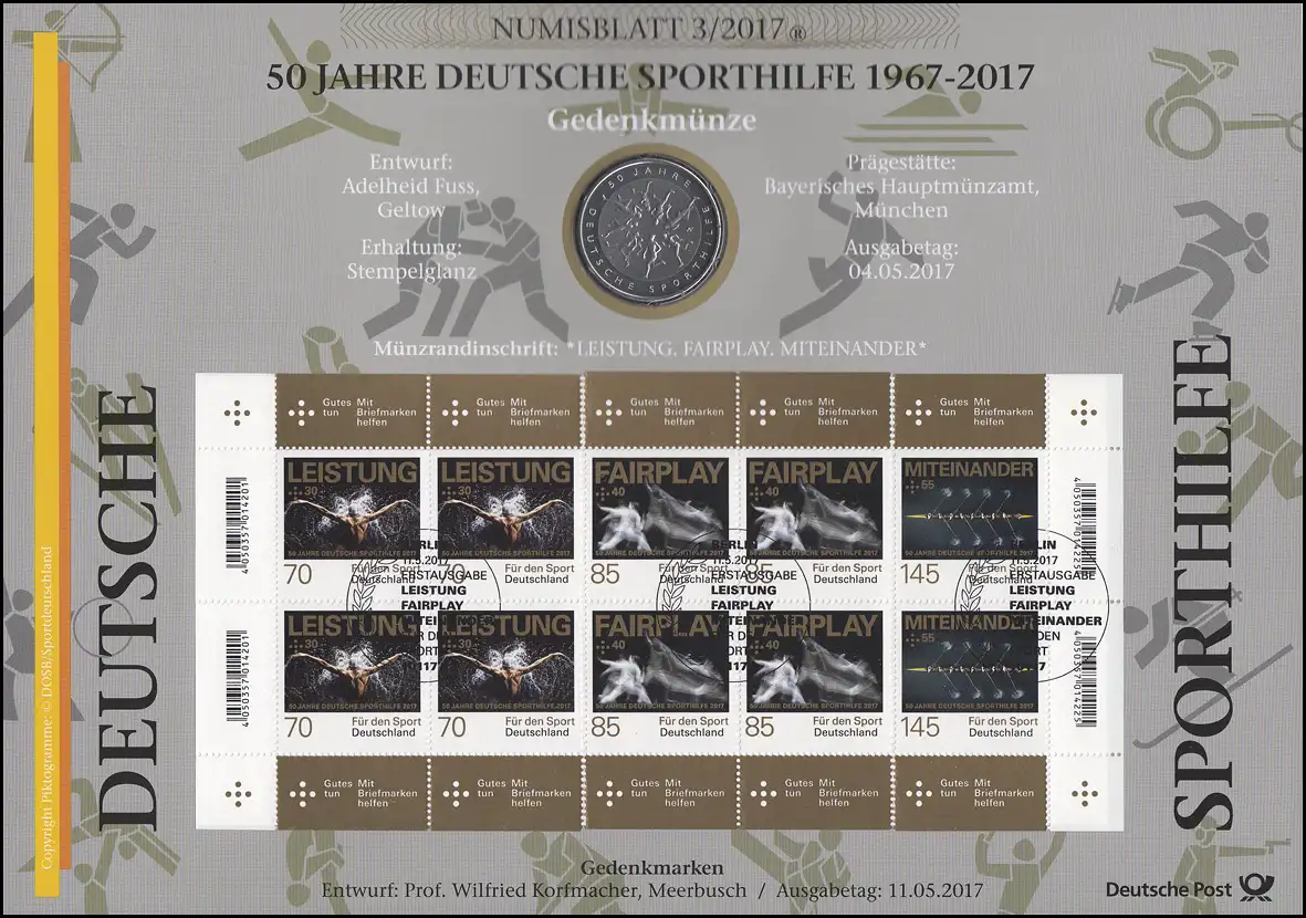 3307-3309 50 ans d'aide sportive allemande - Numisblatt 3/2017