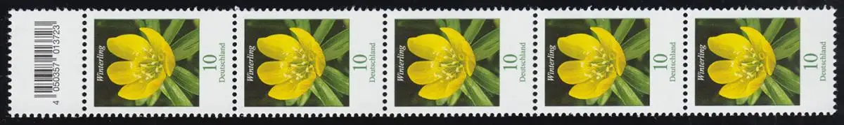 3314 Fleur 10 cent 200 Petits n°, bandes de 5 avec champ de code (excepté 4) **