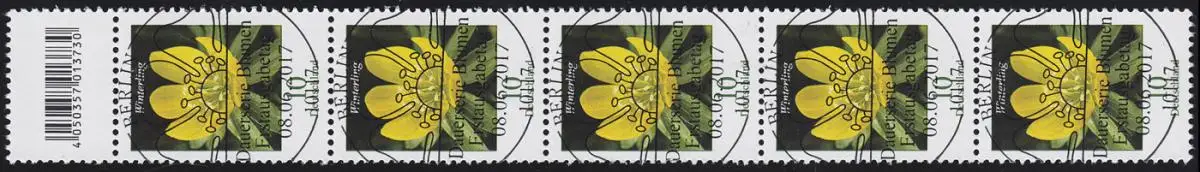 3314 Fleur 10 cent 500ers grand numéro, bande de 5 avec codage champ, ESSt Berlin