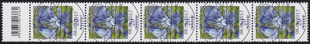 3315 Fleur 20 cents en rouleau 500, bandes de 5 bandes avec champ de code, ESSt Bonn