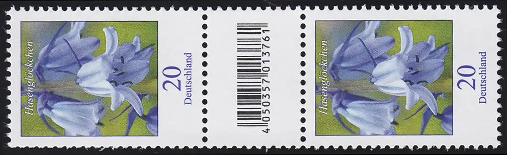 3315 Fleur 20 cents en rouleau 500, couple numéroté, champ de code, sans numéro **