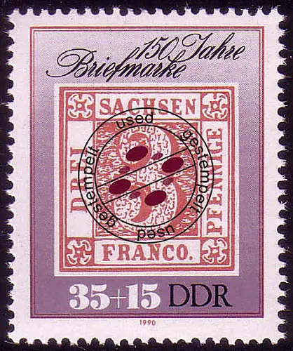 3330 Timbres 35+15 Pf Sachsen 1ère édition O