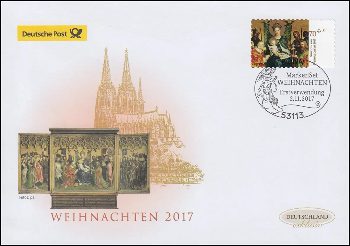 3345 Noël 2017, autocollant, FDC de bijoux Allemagne exclusif