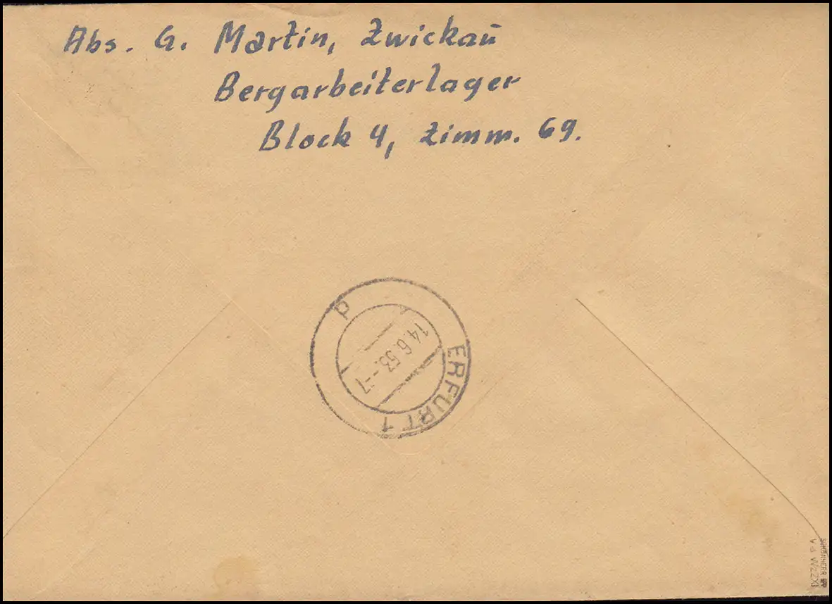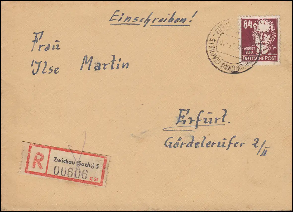 341vaXI Bebel EF R-Lettre ZWICKAU (Sachs) 5 MONTAGNE BERGwerkerHEIM 13.6.53, BPP-testé