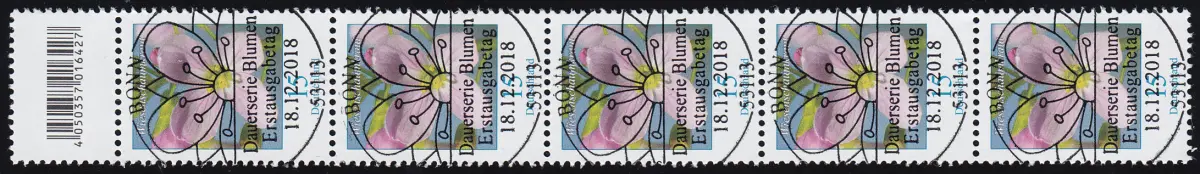 3424 Mousse de prés 15 cents, bande de 5 bandes avec champ de code, ESSt Bonn 18.12.18