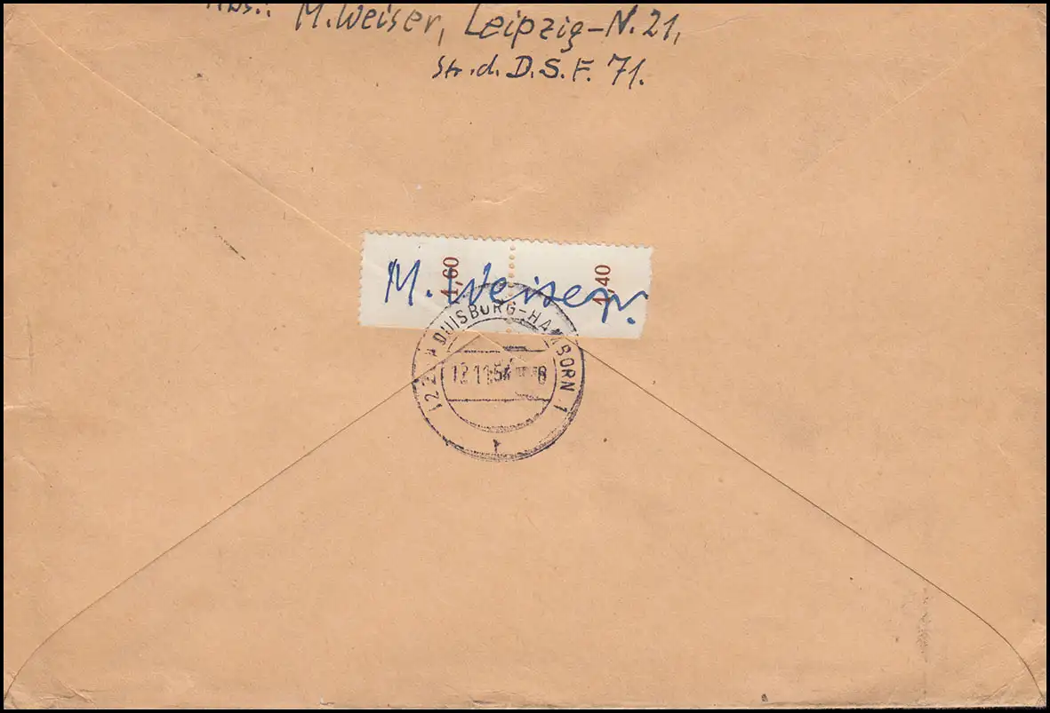 344-348 Karl Marx Miscellat R-Lettre LEIPZIG 10.11.54 vers Duisburg-Hamborn
