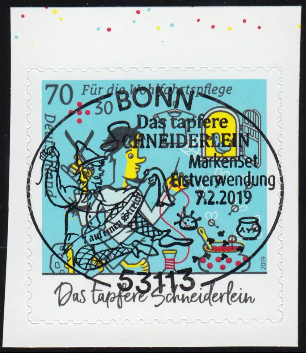 3444 Le brave tailleur 70 cents, autocollant en MH 114, EV-O Bonn