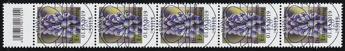 3447 Hyazinthe de raisin 120 centimes, bande de 5 bandes avec champ de code, ESSt Bonn 1.3.19