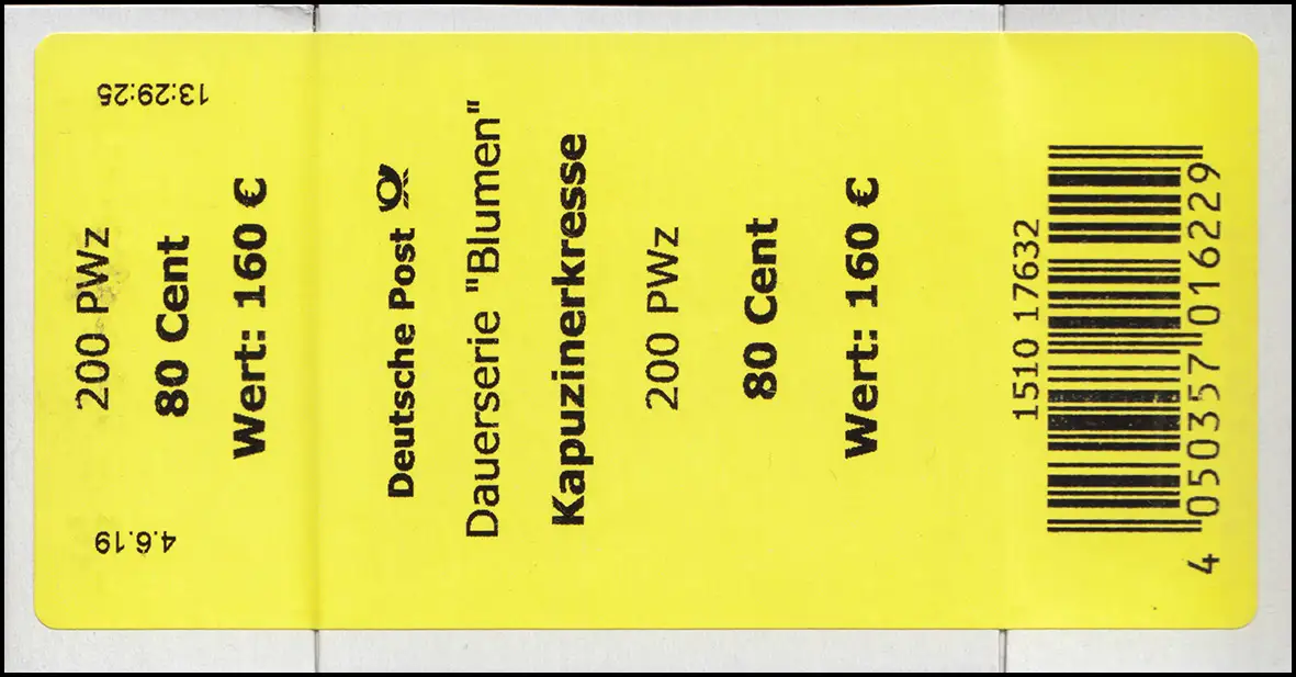 3469 Kapucine 80 C (grand n°) Banderole / autocollant pour 200 pièces