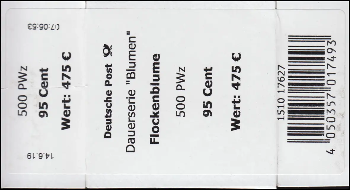 3470 fleur de flocons 95 centimes + CF Banderole / autocollant (grand numéro) pour 500