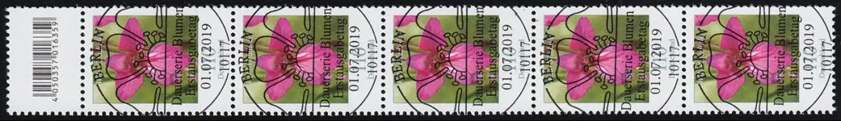3471 Wild-Gladiole 110 centimes, bande de 5 bandes avec codeurfeld, ESSt Berlin 1.7.2019