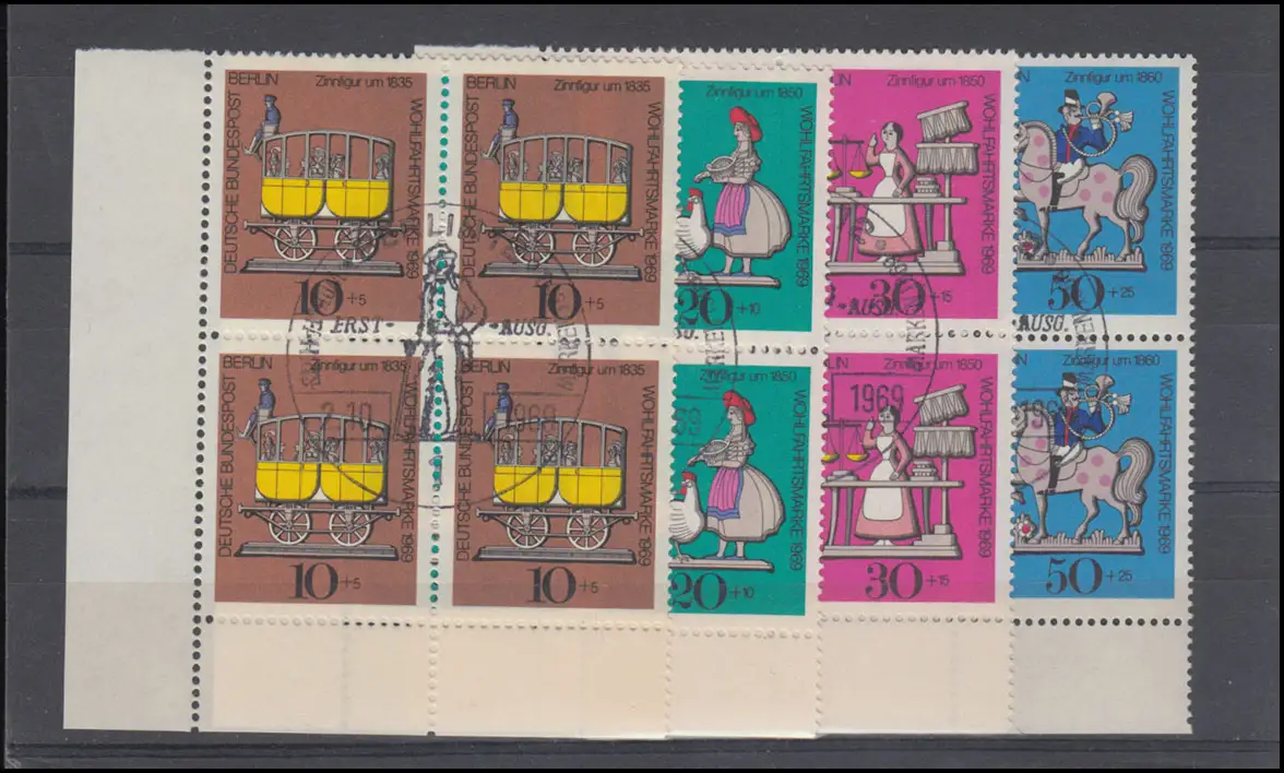 348-351 Wofa figures en étain 1969, ER-Quatre blocs en bas à gauche, ensemble ESSt Berlin