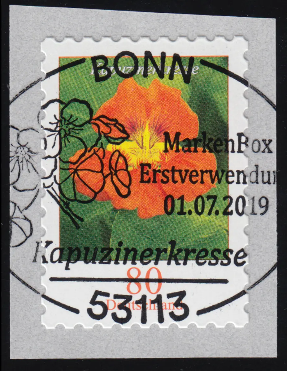 3482 Kapucinerkresse 80 cent (s) sk de 100 avec numéro UNGERADER, EV-O Bonn 1.7.19