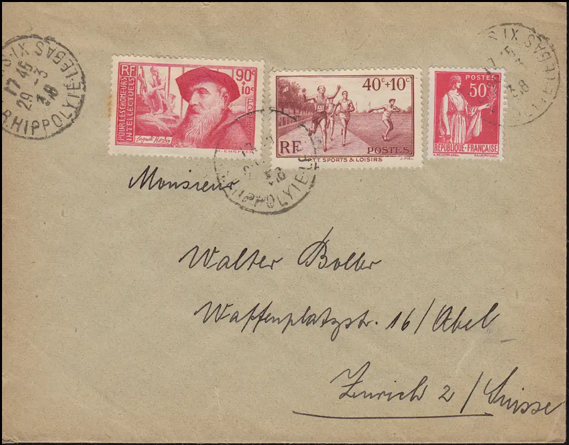 352 Rodin + 348 Sport + 276 Paix Lettre PARIS IX RUE HIPPOLYTE LEBAS 29.3.1938