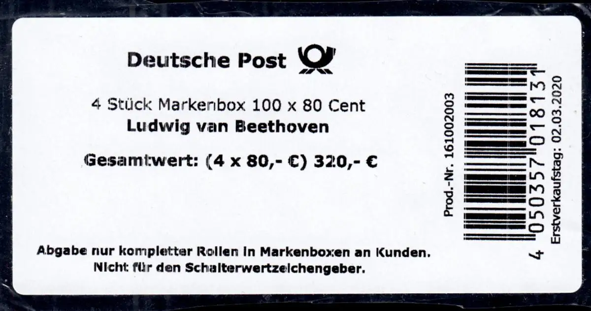 3520 Ludwig van Beethoven - BANDEROLE pour 4 boîtes de marque