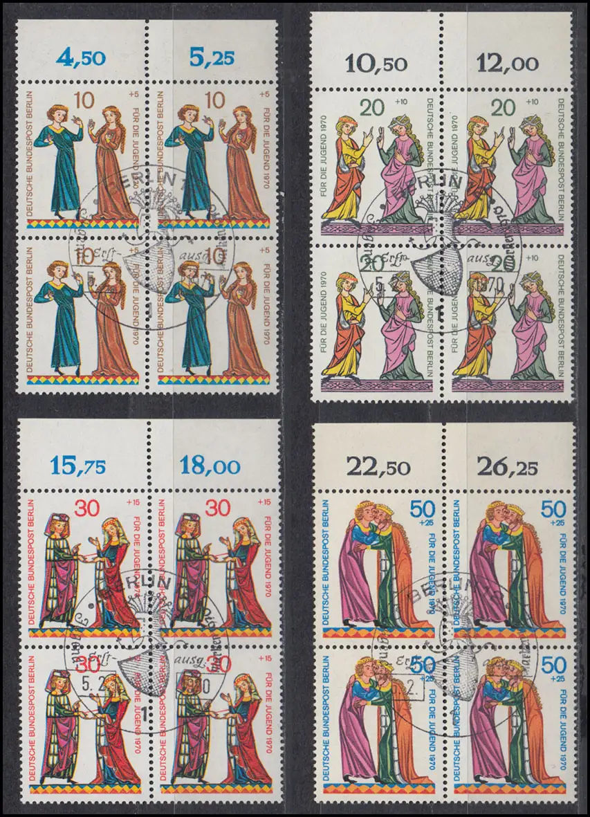354-357 Jeunes Minnessistes 1970, blocs OR, avec PLF 354I, ensemble ESSt Berlin