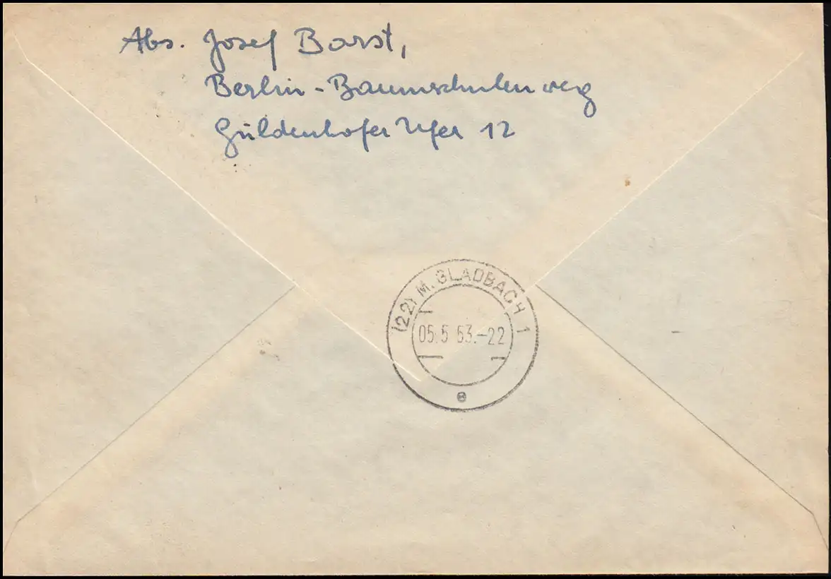 355-357 Voyage à vélo Paix 1953 avec 357II sur lettre R BERLIN 25 - 4.5.53