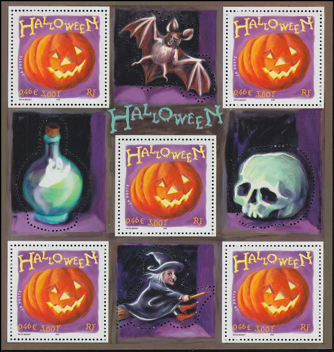 3567 Halloween Tête de citrouille Sorcière Chauve-Souris fantômes - Petit arc à 5 timbres **