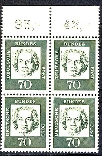 358b Bed. allemand 70 Pf OR-Quaterbl. ** post-fraîchissement