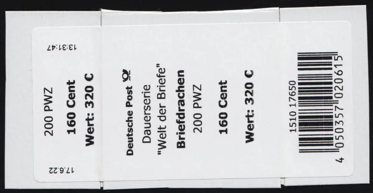 3647 Dragons-lettre 160 cent - Banderole / autocollants 200-roule, grand Z dans PEWZ