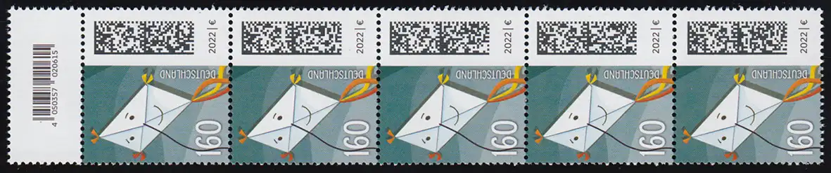 3647 Dragons-lettres 160 centimes de bandes de 200, 5 bandes avec champ de code **