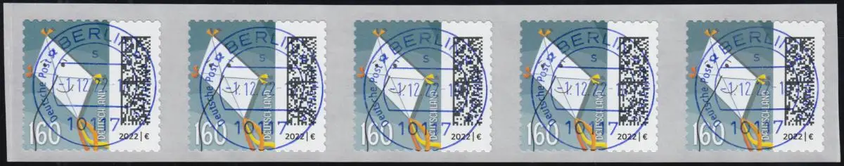 3654 Draches-lettre 160 cent sk 500er, 5 bandes GERADE Nr. EV-O VS Berlin