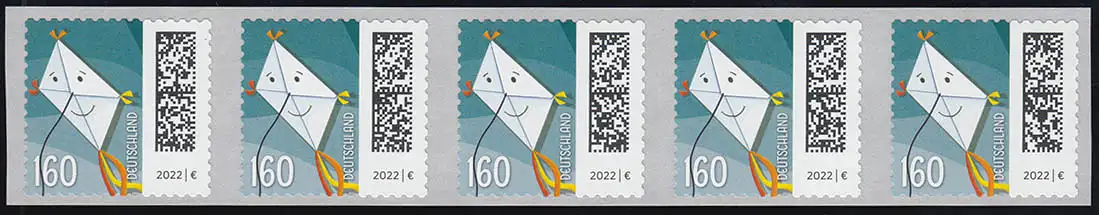3654 Drachmes-lettre 160 centimes sk 100er, bandes de 5 GERADE Numéro **