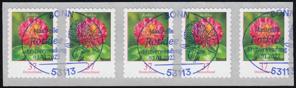 3663 Trèfle rouge 37 cents sk 5 bandes avec numéro GERADER, EV-O Bonn 3.1.22