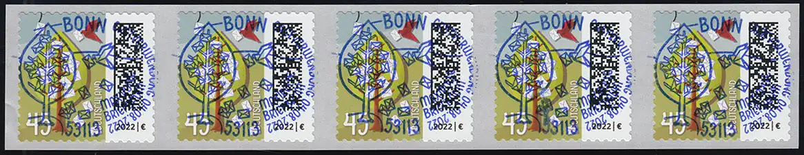 3713 Arbre 45 cents sk de 500, bandes de 5 unités UNGERADE Numéro, EV-O BONN