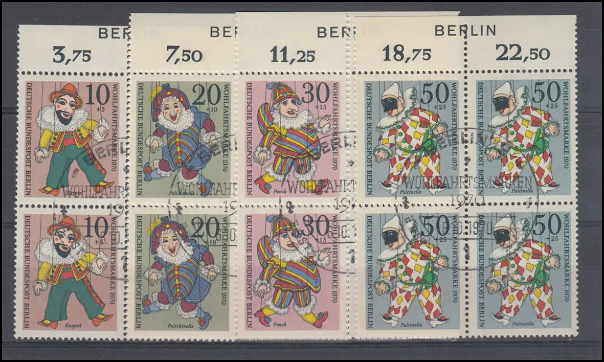 373-376 Wofa Marionettes 1970, OR-Vbl. avec tirage BERLIN, phrase ESSt Berlin