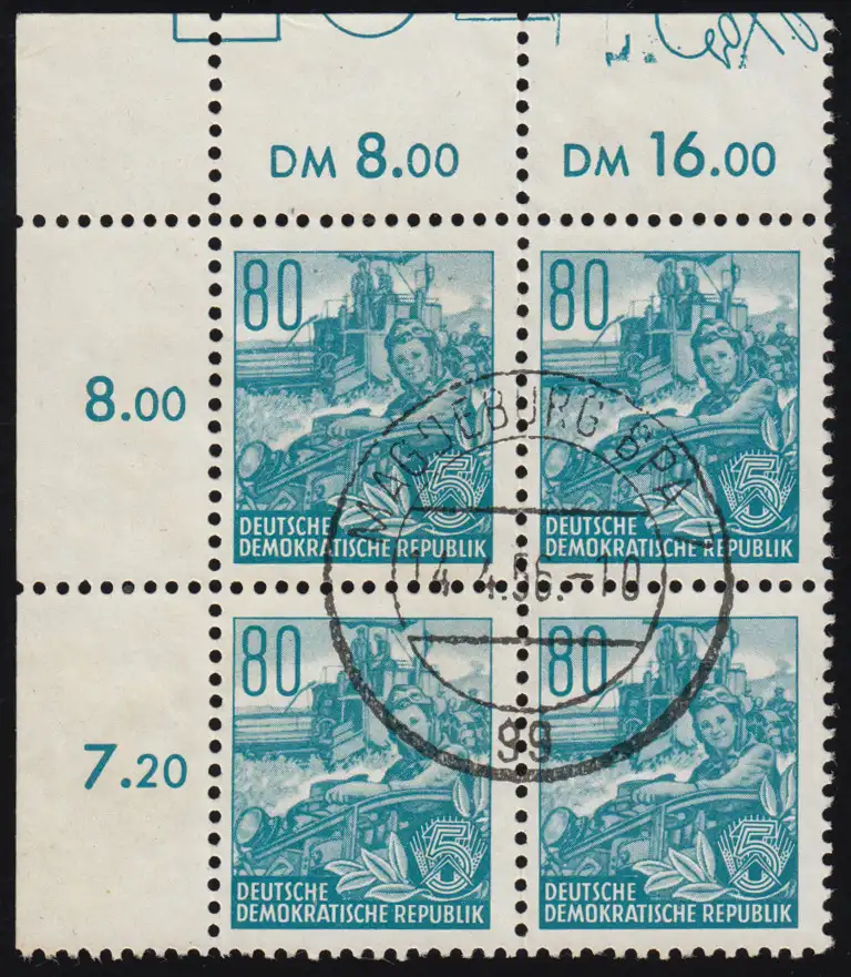 378XI Plan quinquennal Bloc quatre de coin en haut à gauche, centre MAGDEBURG 4.4.56